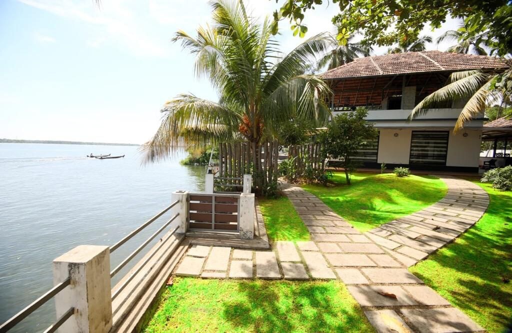 IMP UPDATE- Observera att gräsmattan bakom boendet har ett renoveringsarbete och inte är användbar nu. Med 350 meter flodstrand med gröna gräsmattor och fullt av träd i 1,5 tunnland mark kan detta hus användas för en lugn semester eller som festplats med familj/vänner. En syntetisk tennisbana inomhus och den första pickleballbanan i Kerala finns i själva fastigheten. Med gott om gräsmatta och gymutrustning har aktiva människor också gott om alternativ.