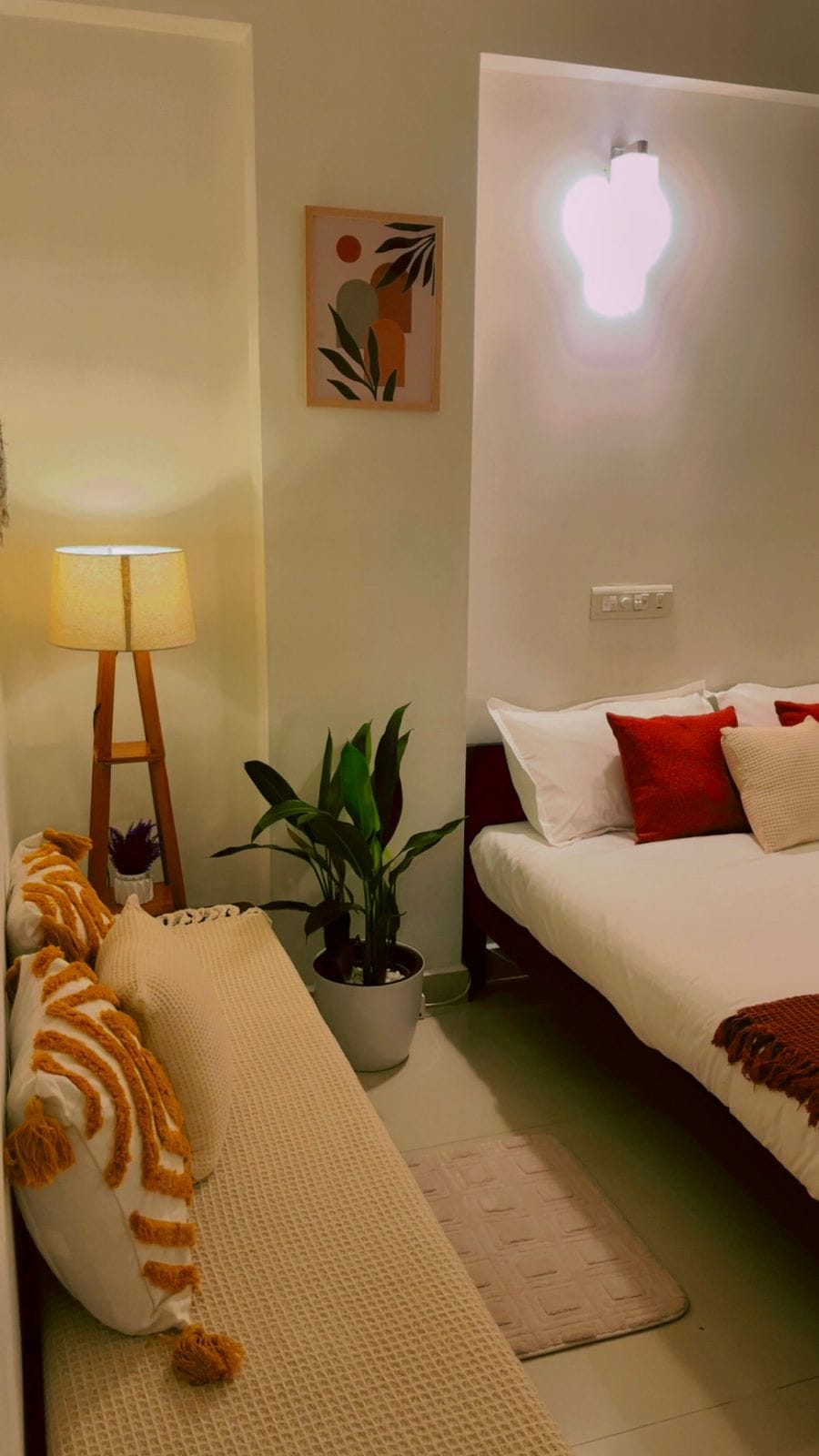 Bo i en modern, minimalistisk, mysig och genomtänkt designad, kompakt studiolägenhet med luftkonditionering i Vazhakkala, bara några minuter från Infopark och Kakkanad. Perfekt för par och yrkesverksamma, detta privata utrymme erbjuder en queensize-säng, utrustat pentry, tvättmaskin, fräscha sängkläder och enkel självincheckning. Beläget på bottenvåningen i ett lugnt område, med snabb tillgång till IT-parker, kaféer, butiker och väsentligheter. En ren, bekväm tillflyktsort för arbete eller avkoppling.