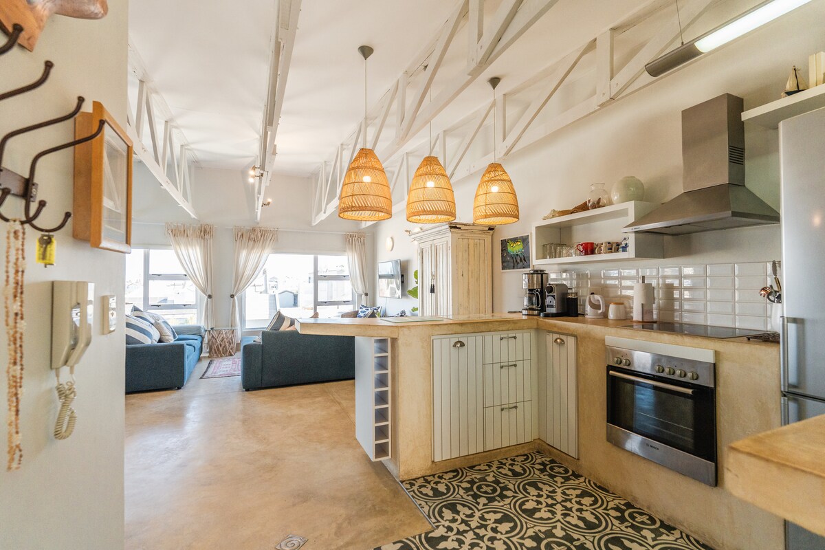 Njut av denna loftlägenhet i industriell stil inom gångavstånd från stranden, staden och sportcentret. Med en fiberinternetanslutning, dubbelgarage (tillräckligt högt för ditt taktält) och stor braai (utomhusgrill) är du säker på att få en oförglömlig vistelse!