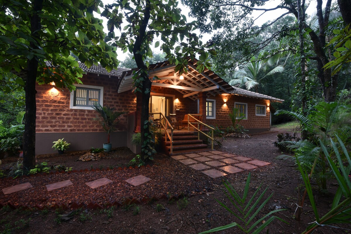 Våra rymliga goan-stil stugor ligger på en ekologisk plantage på väg till Dudhsagar Waterfall, som ligger i en kokosnötlund, mitt i exotiska växter. Det är en 50 tunnland stor fastighet med en kryddträdgård, naturstig och naturlig vattenpool. Koppla av i vårt tropiska paradis, och låt dig bli bortskämd med traditionell goan-mat. En gratis Spice Tour ingår för våra gäster.