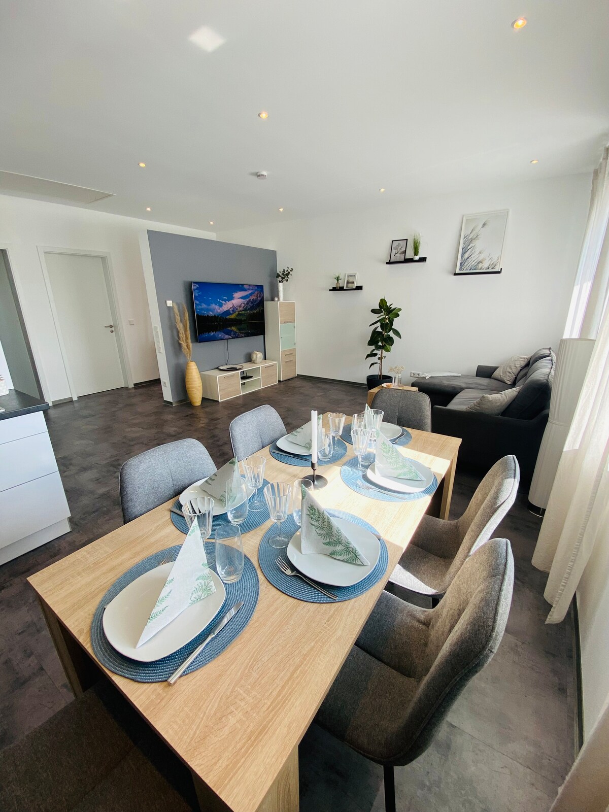 Välkommen till vår vackra lägenhet, den ligger i ett lugnt lugnt läge, i en stadsdel sydväst om Fulda. Fuldas centrum och motorvägsanslutningen Fulda Süd (A7 och A66) kan nås med bil på några minuter. Med en balkong och en vacker utsikt. Med 120 m² erbjuder den tillräckligt med utrymme för komfort och funktionalitet. Parkera din bil gratis och bekvämt framför huset. Vi ser fram emot att välkomna dig som vår gäst