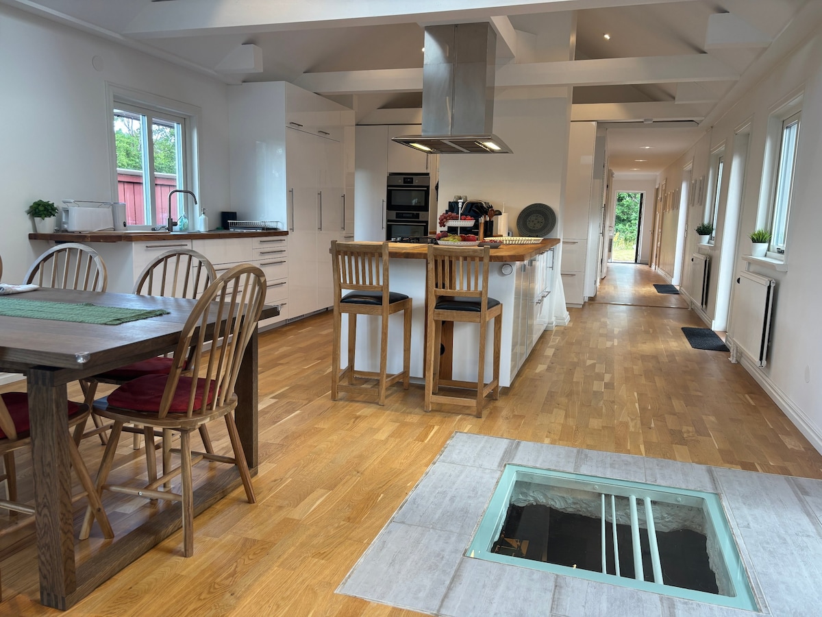 Willkommen in der Villa Kvarnbacken, einem luxuriösen Ferienhaus mit beheiztem Hallenbad, Jacuzzi und historischer Windmühle im Garten. Die Villa bietet Platz für bis zu 6 Erwachsene und 1 Kind, mit stilvollen Schlafzimmern, moderner Küche und einem gemütlichen Kamin. Gelegen in Ljungbyholm, nur 20 Minuten von Kalmar entfernt, genießt ihr Ruhe, Natur und erstklassigen Komfort. Perfekt für Familien oder Gruppen, die Entspannung und Luxus suchen! Haustiere sind nicht gestattet.