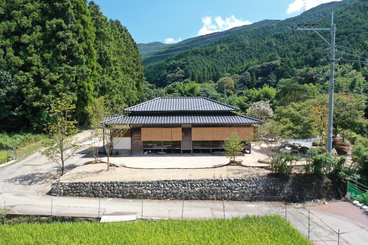 Ett renoverat gammalt hus med modern inredning ligger i naturen i Akizuki