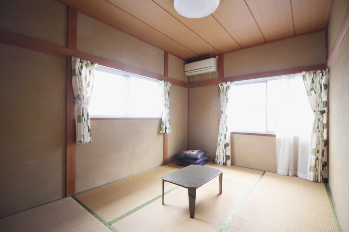 Det är en stor ren villa i japansk stil i ett lugnt bostadsområde på en kulle nära havet.Som en allmän regel erbjuder vi en "uthyrningsanvändning".Det finns två rum (gästrum), ett gästrum för vanliga gäster (tatamimattan) och ett gästrum 2 (på övervåningen) för speciella gäster som långtidsvistelser.Långtidsvistelser inkluderar veckorabatter på 15% och månatliga rabatter på 33%.(Som en allmän regel är långtidsanvändare inte tillåtna att använda korttidsplatser under vistelsen) Detta privata boende är förbjudet eller rökfritt.Det finns ingen TV.WiFi är gratis.Eftersom det är ett rum i japansk stil finns det ingen nyckel i rummet.Om du ansöker i förväg kommer vi att tillhandahålla en gratis parkeringsplats (för en bil) under vistelsen.Värden har inget körkort, så vi tillhandahåller retortmat till frukost som inte kräver matlagning, t.ex. curryris, koppnudlar, rostat bröd och kastrulloppa.Använd gärna köket och laga mat åt dig själv.Om du vill kan du tvätta för självbetjäning om du vill.