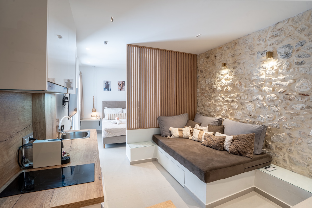 Upptäck magin i Heraklion genom att bo i vårt boende! Njut av bekvämligheten i en modern lägenhet, i ett livligt grannskap fullt av traditionella tavernor och kaféer. Från den bekväma dubbelsängen till det fullt utrustade köket, varje hörn av vårt utrymme kommer att erbjuda dig avkoppling och värme. Med vår service och enkla tillgång till sevärdheterna kommer du att få en oförglömlig upplevelse i stadens centrum!