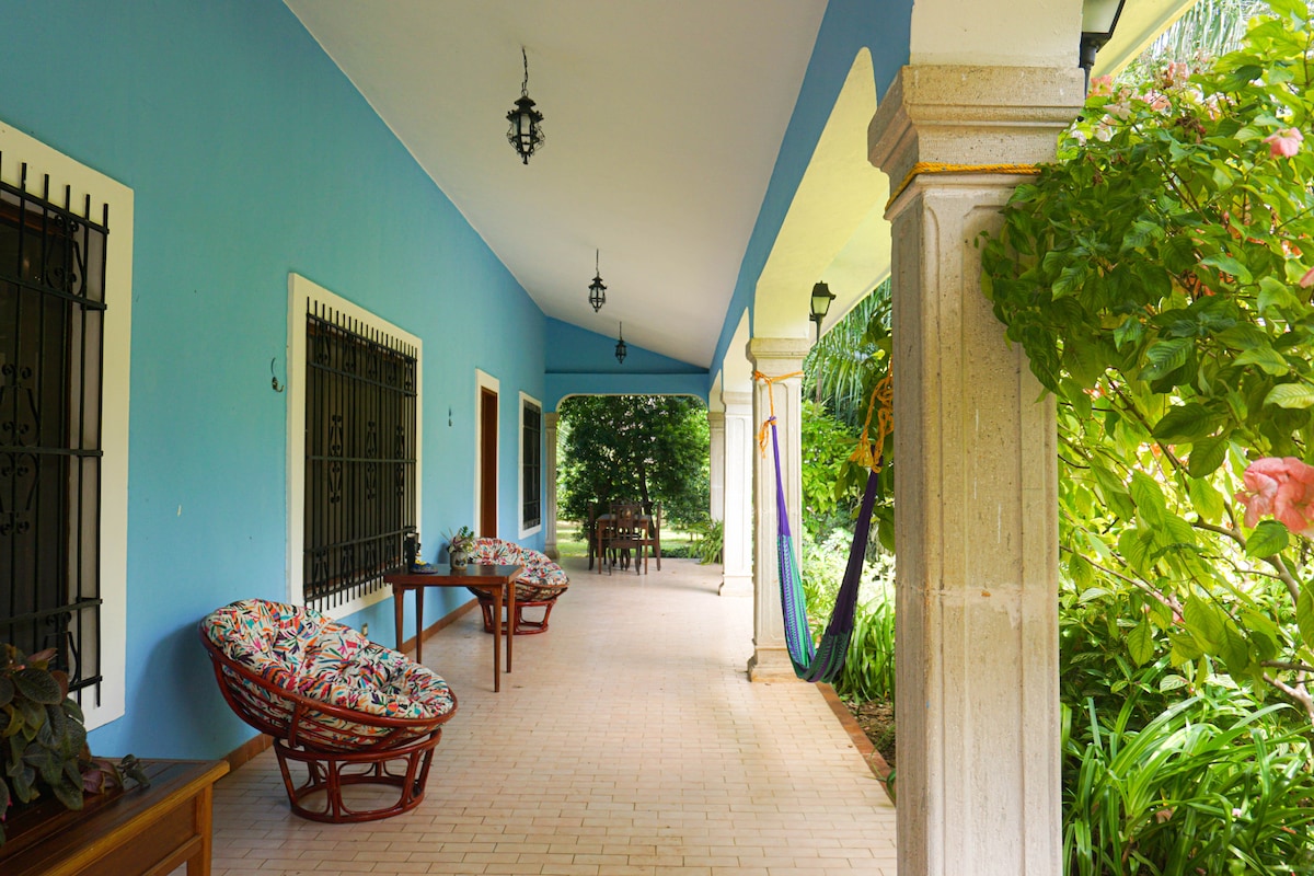 Natur, stil och lugn väntar dig i detta rymliga, ljusfyllda gästhus och skrivstudio. Perfekt för dig som är ute efter en lugn tillflyktsort med enkel tillgång till staden eller stranden. Merida ligger 20 minuter bort i ena riktningen och stranden ligger 20 minuter bort i den andra. Njut av fågelsång, stjärnklara nätter och vackra tropiska trädgårdar med en koi-damm, fontäner och en djungelliknande tropisk trädgård. Njut av en avkopplande spa-liknande upplevelse med en infraröd bastu för 4 personer med rödljusterapi.