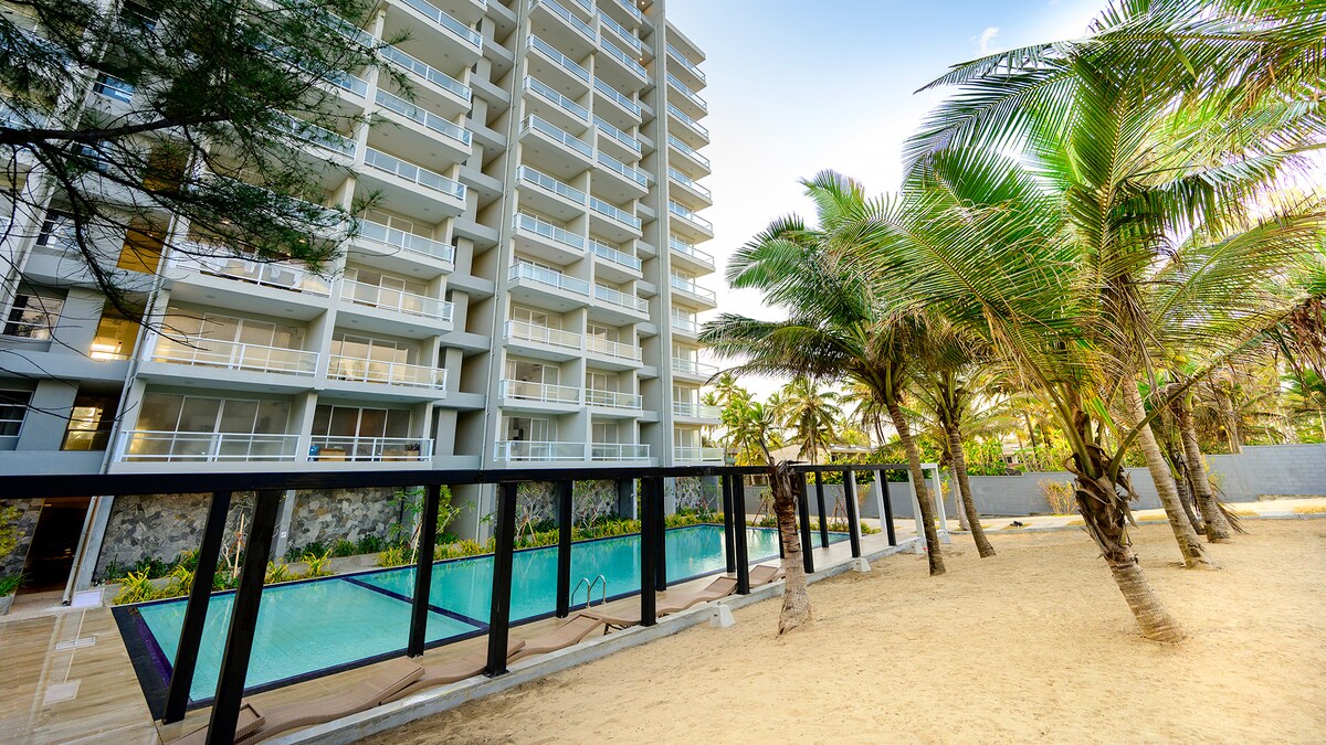 MaSa Beachfront lägenhet med kök och balkong. Det ligger i Uswetakeiyawa med utsikt över Indiska oceanen med pittoresk utsikt över solnedgången och Colombo hamn. 2 sovrum med tillhörande badrum, fullt utrustat kök, pool, gym, särskild parkering och 24 timmars säkerhet. Ett rymligt bostadsmiljö och bekvämt, Resortstil boende med utmärkt panoramautsikt över havet och gångavstånd till stranden. 20 minuter från Colombo Airport på Express Highway.