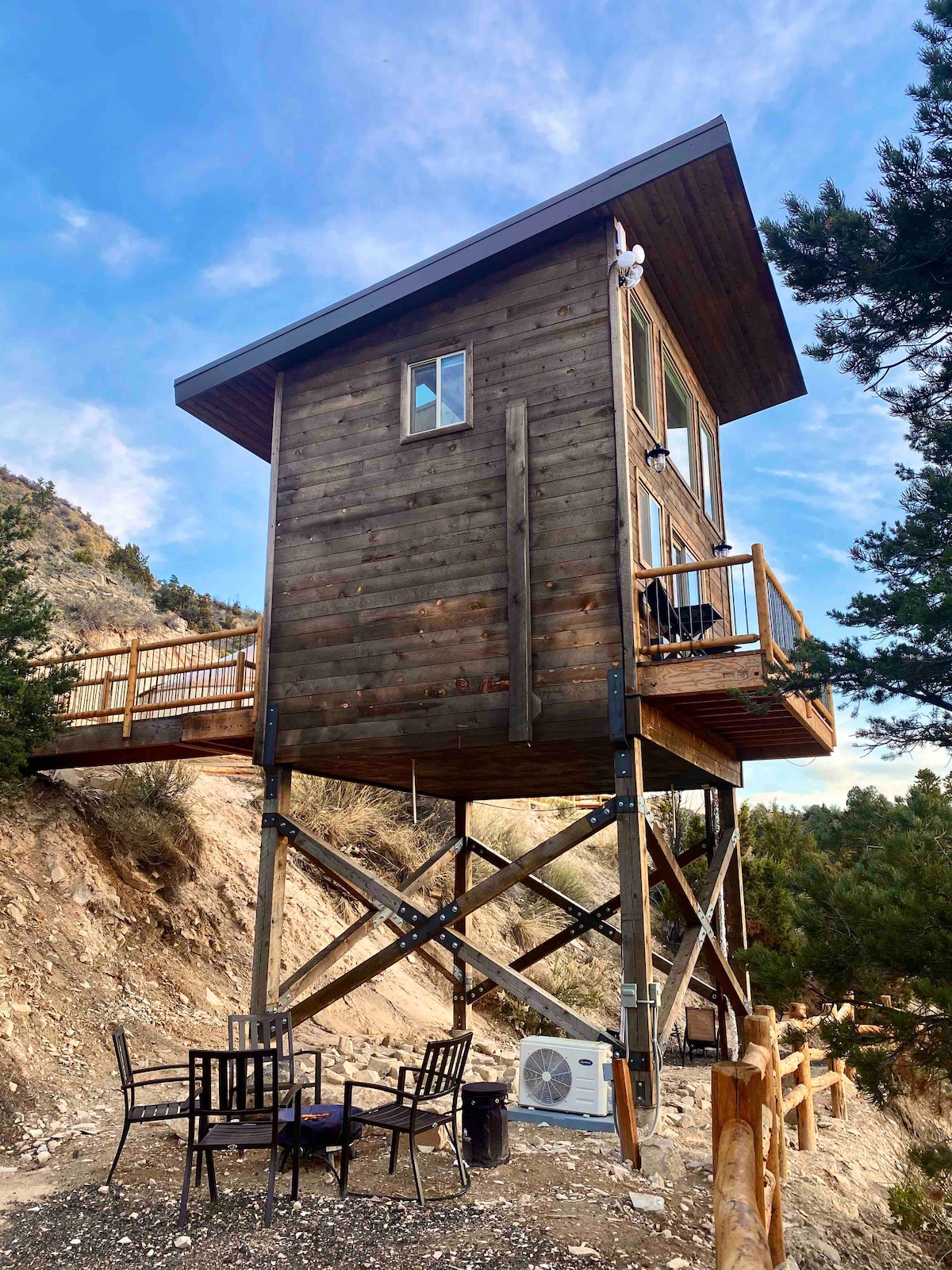 Welcome to Treetop Cabin Treehouse 10 at East Zion Resort! We believe that the places you stay while on vacation should be a unique and fascinating experience! Stunning views and breath taking sunsets every night. Our Tree Houses are incredibly crafted and filled with modern yet rustic finishes. Each one has been designed with its own private bathroom, kitchenette, fire pit, gas grill and AIR CONDITIONING. Come enjoy our Resort pools, hot tubs, lazy river & pickleball at East Zion Resort!