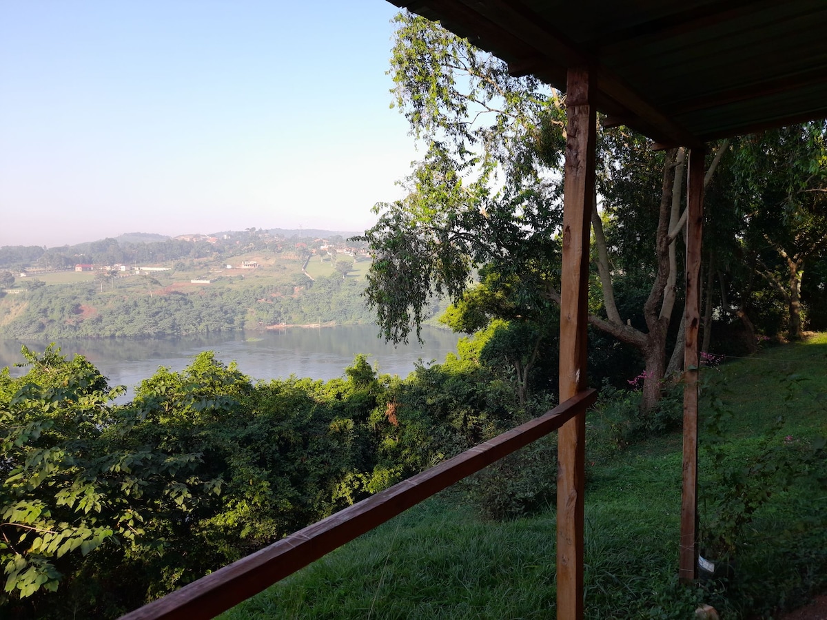 Vackert renoverad med många detaljer från hjärtat, detta är verkligen en speciell plats. Charmig stuga utformad för absolut integritet och komfort och en veranda som kommer att göra att du aldrig vill lämna. Beläget precis vid Nilen i Bujagali ca. 7 km från Jinja stad. Enkel åtkomst till aktiviteter, Nilkryssningar, fågelskådning, kajakpaddling, forsränning och så vidare. Jag finns här för att hjälpa till med allt du kan behöva och se till att du får en minnesvärd upplevelse