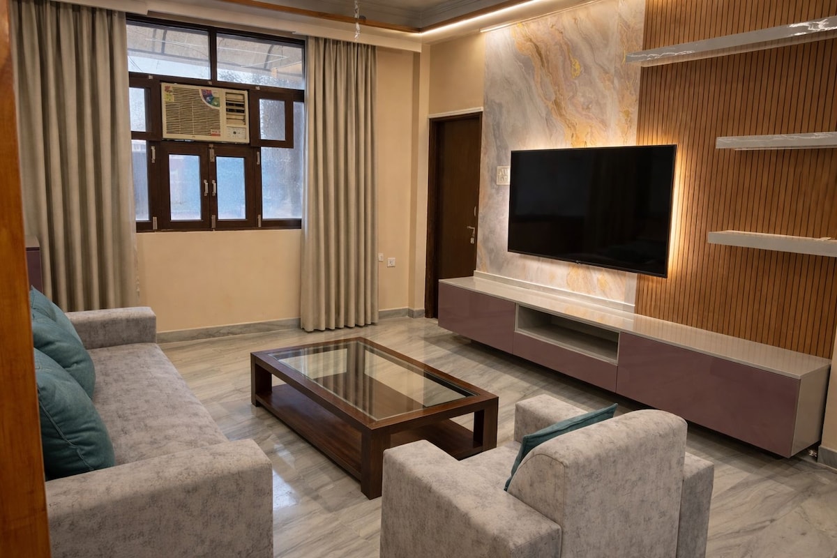 Snyggt och fridfullt 1BHK | Familjevänligt | Modern komfort | Utmärkt läge Snygg, fridfull 1BHK i hjärtat av Kanpur - perfekt för familjer eller ensamresenärer. Njut av ett modernt vardagsrum med TV och Wi-Fi, ett fullt utrustat kök och ett elegant badrum. Det mysiga sovrummet erbjuder komfort och förvaring. Beläget i ett lugnt område, men ändå nära en livlig marknad med butiker och matställen. Perfekt för kortare eller längre vistelser med alla väsentligheter för ett bekvämt besök.