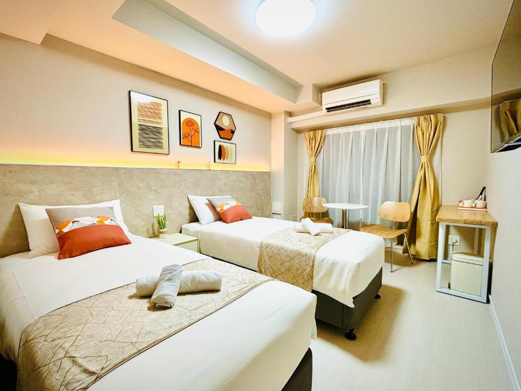 ★1stop 2mins JR Namba Sta (Shinsaibashi/Dotonbori) 16 ★min Umeda (Osaka Sta.) ★17 minuter till Osaka Castle Park ★23 min till Universial City (Universal Studios) ★46min Kansai Airport ※ 9 minuters promenad till tunnelbanan Midosuji Line Daikokucho Station ★1stop 2min Namba (Shinsaibashi/Dotonbori) ★10 minuter till Umeda ★2 hållplatser till Japans högsta torn [Abeno Harukas] Panoramautsikt över Osaka · Rummets storlek är 26m ² och innehåller två enkelsängar för upp till 2 personer.Rummen är fullt fungerande och vardagsrummen är perfekta för både backpackers, par, familjeturer och vänner.Lawson närbutik ligger mittemot hotellet, fullt utrustad med livet. · Alla rum är utrustade med TV, kylskåp, mikrovågsugn, kök, luftkonditionering, vattenkokare, hårtork, höghastighets wi-fi. · Våta och våta badrum är separerade.Schampo, balsam, duschtvål, handtvål tillhandahålls alla av det japanska kosmetiska märket Pola.