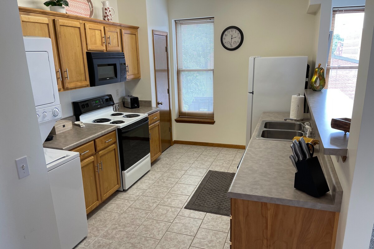 Fly till vackra, lantliga Kansas med denna rymliga 2 sovrum, 2 badrum loft. Det stora sovrummet har en king size-säng och eget badrum med dusch. Det andra sovrummet har en dubbelsäng med eget badrum och bubbelbadkar. Ett fyllt, modernt kök, bar och 2 matplatser gör detta till det perfekta boendet att samlas med familj eller vänner. Ett skrivbord och höghastighets Wi-Fi gör att du bekvämt kan arbeta från loftet. Utomhusområdet har ett däck, utemöbler och täckt parkering.