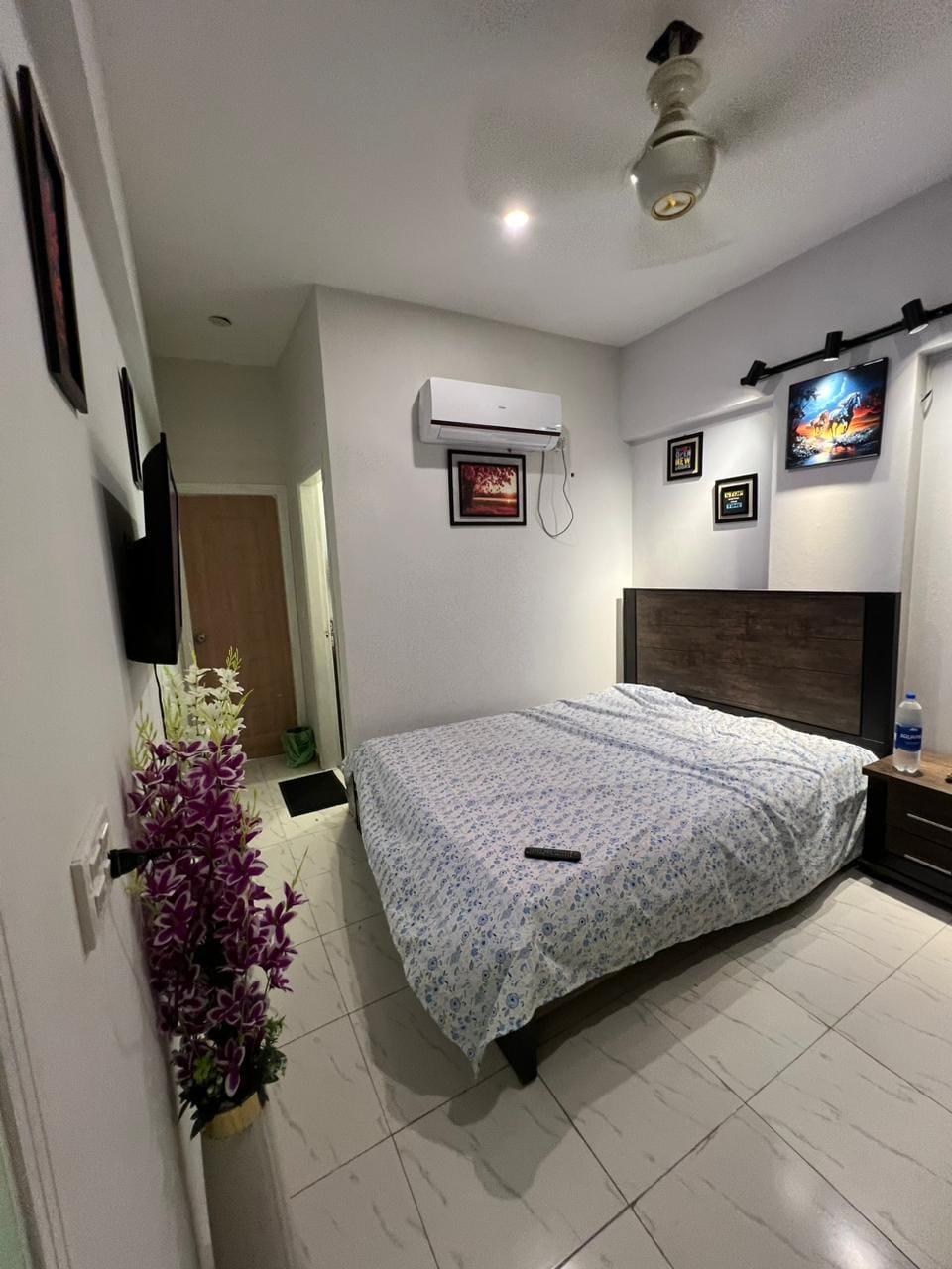 Koppla av med hela familjen på detta fridfulla ställe att bo på. Separat lägenhet med säkerhetskameror (övervakningskameror). Fullt möblerat för lång- och korttidsvistelser. Gratis parkeringsplats med säkerhetsvakt. mitt i hjärtat av Defensce. 25 minuter från Jinnahs internationella flygplats. 10 minuter från tågstationen. 12 minuter från havsutsikten