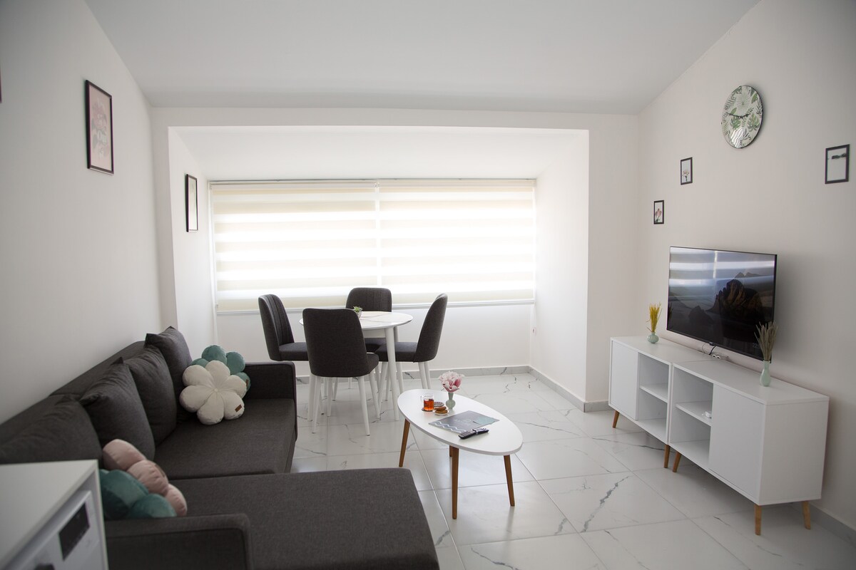 Vårt koncept: "Känn dig som hemma i Turkiet!" Vi strävar efter att skapa en mysig och bekväm atmosfär så att du kan njuta av en bekymmersfri och givande semester! Dessa välkomnande 1+1 lägenheter (kök/vardagsrum och sovrum) med balkong ligger på 6: e våningen. Lägenheterna inkluderar ett separat sovrum, ett fullt utrustat kök och ett badrum med dusch. Allt som behövs för en bekväm långtidsvistelse tillhandahålls, inklusive obegränsat höghastighetsinternet. Fugla2 strand 15 minuters promenad bort.