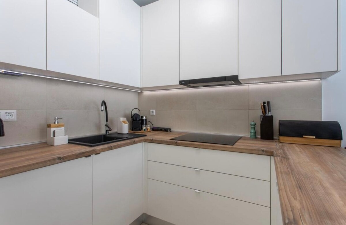 Detta moderna boende erbjuder allt en gÀst behöver :en touch av lyx, avskildhet, en infraröd bastu och en underbar terrass med utsikt över havet. För ytterligare avkoppling finns ocksÄ en utomhuspool för fri anvÀndning för alla vÄra gÀster. Centrum av Split eller Trogir Àr 10 minuter med bil, och du kan gÄ till centrum av Kaƥtel Luksic för att lÀra dig om historien och skönheten i Kaƥtel. Stranden och havet ligger bara 800 meter frÄn fastigheten, och vi kan skryta med att stranden ligger pÄ samma avstÄnd.