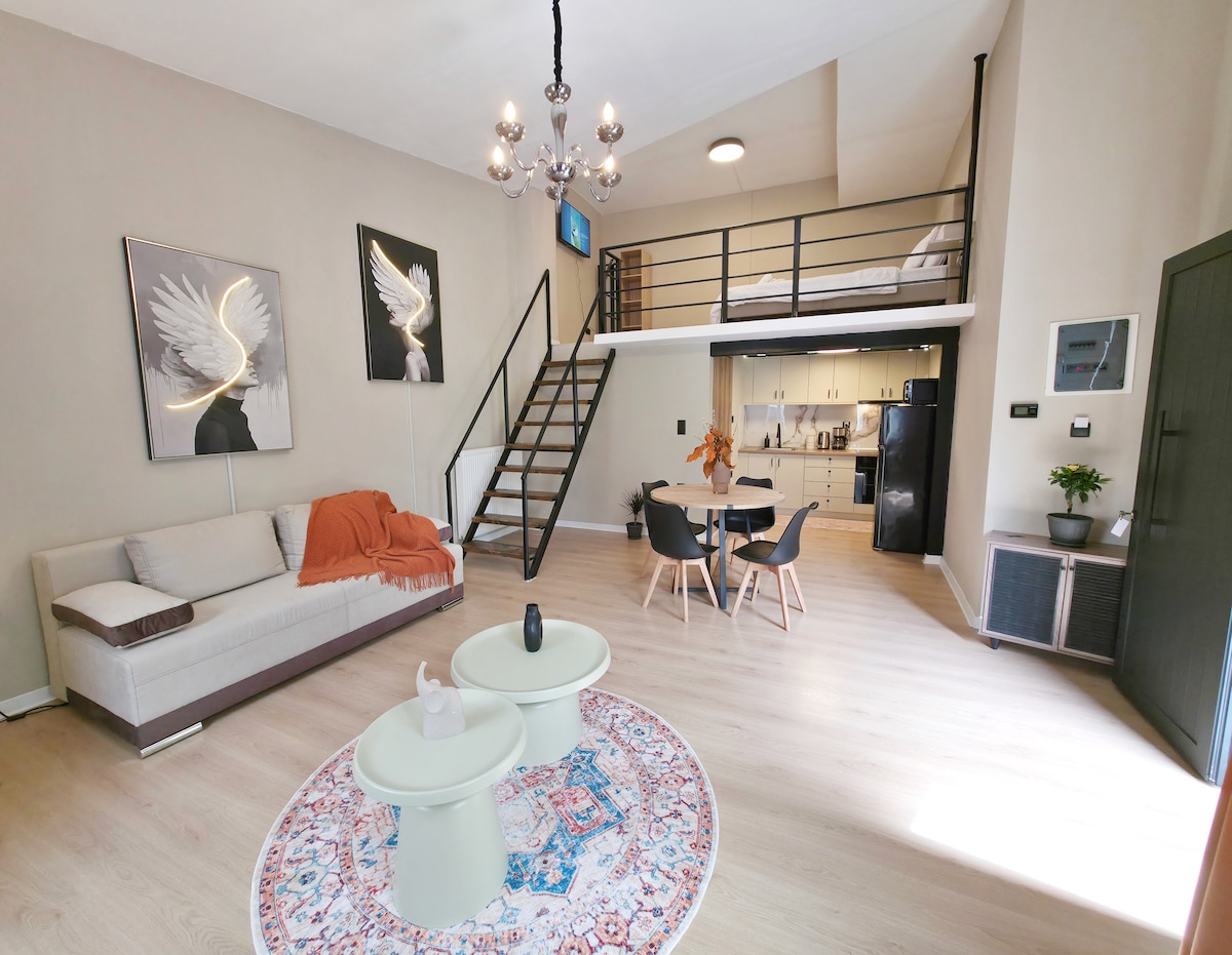 En modern ljus studio i centrum av Kastoria