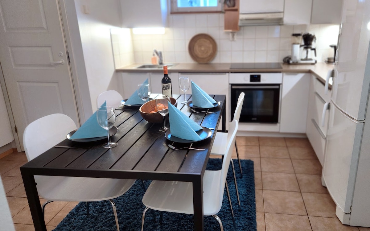 Upplev enkelt boende nära centrum. Parkera gratis och ladda din bil billigt. Upplev en uppfriskande kontakt med naturen, till exempel till mountainbikeleder från din bakgård. Börja morgonen med en promenad i naturen, koppla av i mjuka bastubad och njut av förfriskningar på solterrassen. Tillaga din mat i det eleganta köket, ät på din egen täckta terrass och njut av en avslappnad kväll i vardagsrummet med Netflix eller stadens kultur- och underhållningsutbud. Möjlighet till isbad mot en avgift på 25 euro (5.8.2024–>).