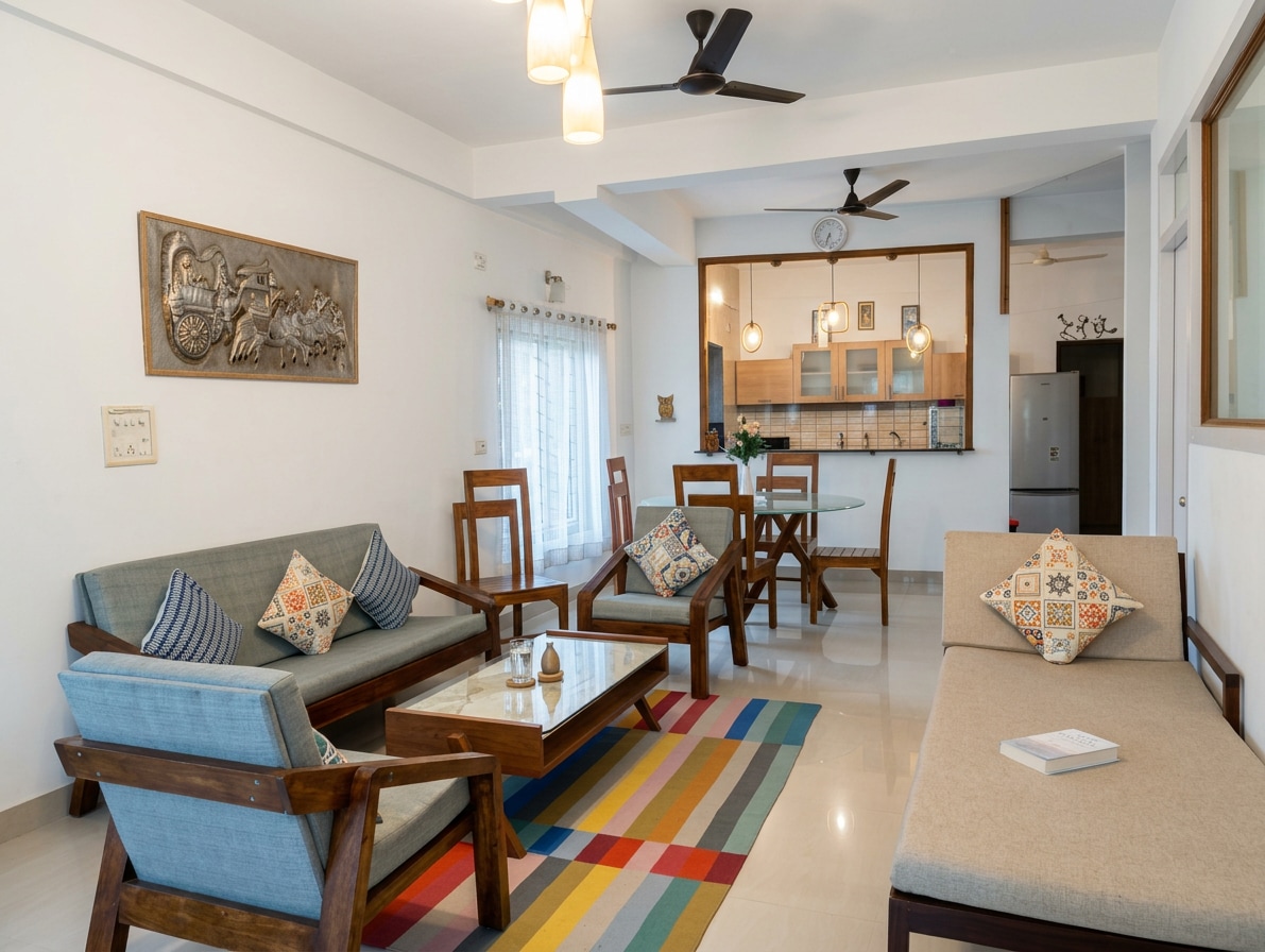 LYXIGT UTRYMME, LJUST NATURLIGT LJUS OCH UTMÄRKT VENTILATION är vad du kan förvänta dig i vårt hem. Beläget i fridfulla franska kvarteret, är denna 3BHK på översta våningen estetiskt utformad med gamla restaurerade teakträmöbler . Det finns en privat terrass där gäster kan varva ner på morgnar eller sena kvällar. Lägenheten är utformad med tanke på alla komfortpunkter för familj och vänner grupp