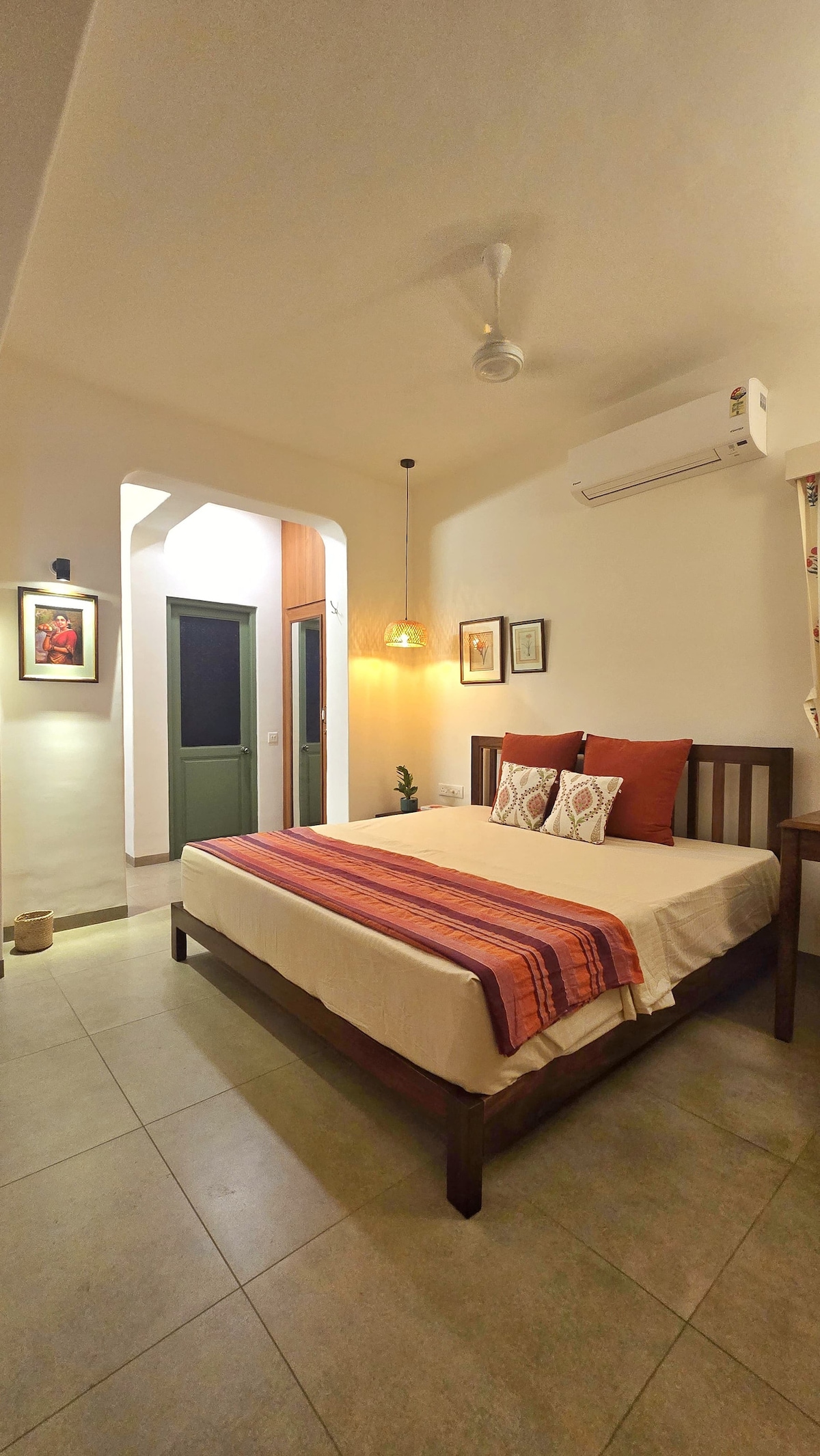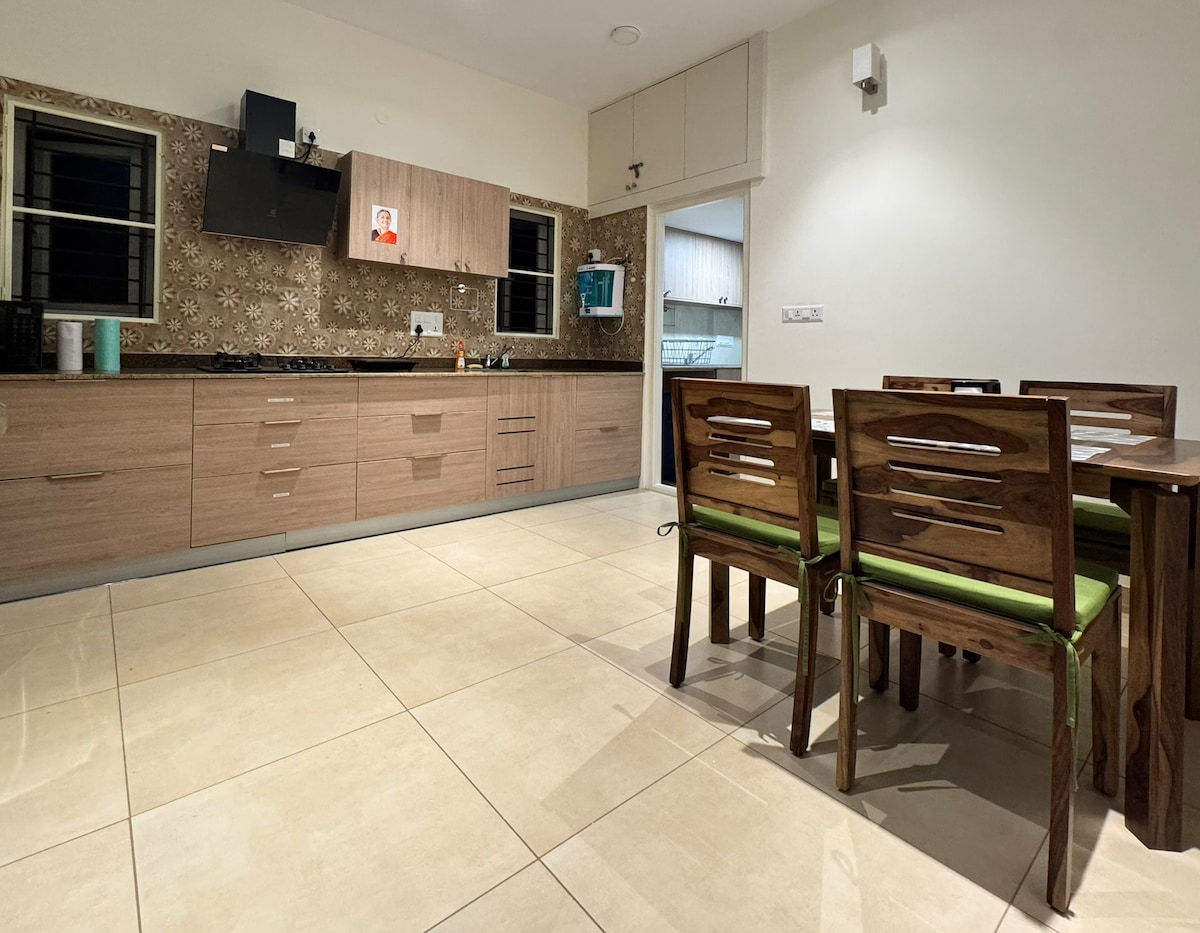 Välkommen till vår helt nya, rymliga takvåning med 3-BHK, perfekt för familjer och grupper som söker komfort och bekvämlighet. Alla sovrum har dubbelsängar med ortopediska madrasser och luftkonditionering för en lugn natts sömn. Koppla av i det stora vardagsrummet med en Smart TV, blixtsnabbt WiFi och en dedikerad matplats. Levereras med två superrena badrum fyllda med väsentligheter för bad. Fullt utrustat kök inkluderar högkvalitativa apparater och porslin för dina kulinariska äventyr!