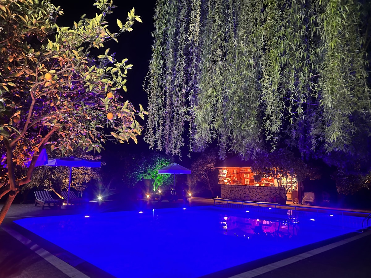 56 m2 bungalow Läge: till havet och stranden 130 m, för att fiska restauranger 100 m, till marknaden 100 m. Området är 6500 m2 med orange-, oliv- och granatäppelträdgårdar. Bungalow konsert lyx: bekväm dubbelsäng, elegant och rymligt duschrum, 9 kg tvättmaskin, gasspis med ugn, kraftfull luftkonditionering, komplett uppsättning redskap, sittplatser på terrassen, grillplats