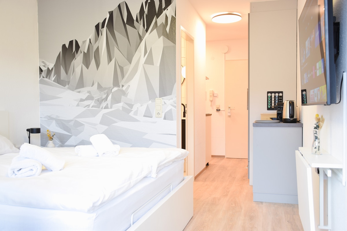 Välkommen till "happines(t)" – ditt lugna stadsboende i hjärtat av Kempten. Den centralt belägna lägenheten ligger 5 minuters promenad från Forum Allgäu. Gamla stan, Fischerstraße, kaféer och butiker ligger inom bekvämt gångavstånd. Trots närheten till staden, promenadstigar runt Haubenschlosspark precis utanför dörren inbjuder dig att koppla av. En inbjudande västerbalkong ger avkopplande stunder. Perfekt för par, stadsresor, affärsresenärer och de som passerar genom.