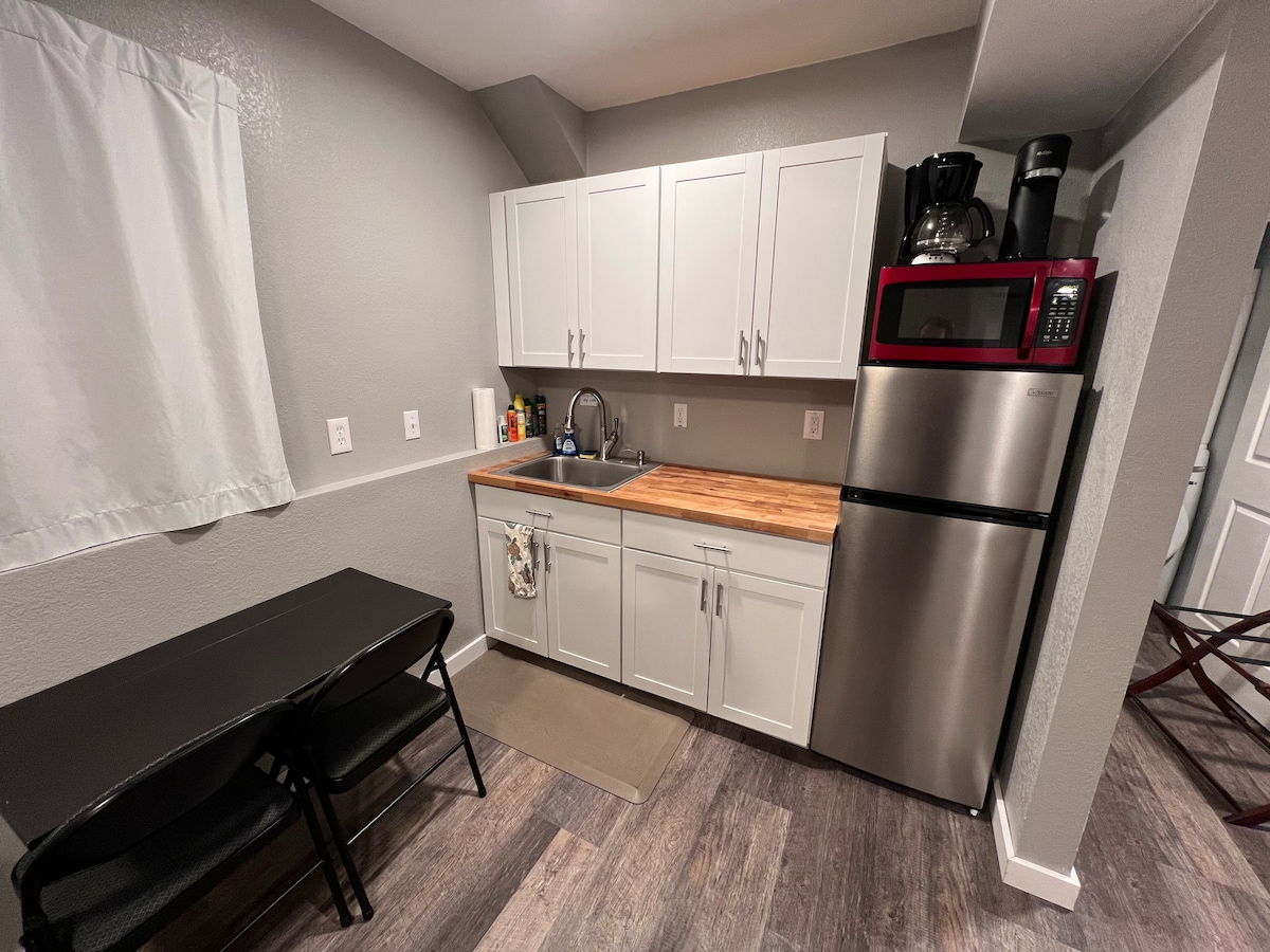 Liten effektivitetslägenhet belägen ovanför garaget i trevligt hem beläget två kvarter söder om västra änden av Anchorage Park Strip. Egen ingång och eget utrymme. Utsikt över Chugach-bergen. Promenera till centrum eller kuststigen. Queen-säng. Jacuzzi bad. Kabel-TV, Apple-TV för streaming och wi-fi. Tvättmaskin och torktumlare. Brödrost, kaffebryggare och kylskåp. Kaffe och te ingår. Har inte ett fullt utrustat kök.