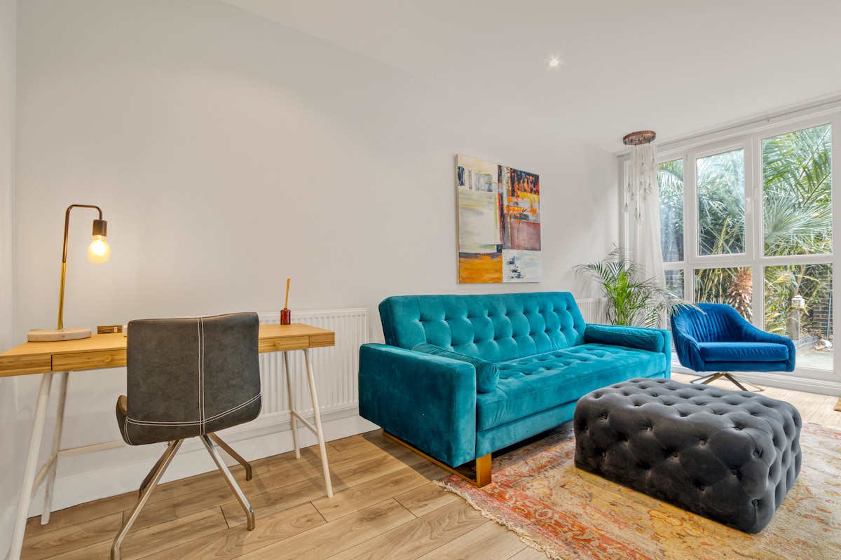 Bo i ett elegant modernt hem i centrala London, bara 15 minuters promenad frÄn ikoniska landmÀrken, restauranger och transportförbindelser. Det ljusa vardagsrummet i öppen planlösning har vikdörrar frÄn golv till tak som öppnar mot en privat söderlÀge trÀdgÄrd, vilket skapar en ljusfylld inomhus-utomhus kÀnsla. Koppla av pÄ den bekvÀma L-formade soffan eller den ikoniska Egg-stolen, njut av utsikten över trÀdgÄrden och utnyttja det fullt utrustade moderna köket och lyxduschrummet. En fridfull, elegant bas för att utforska London.