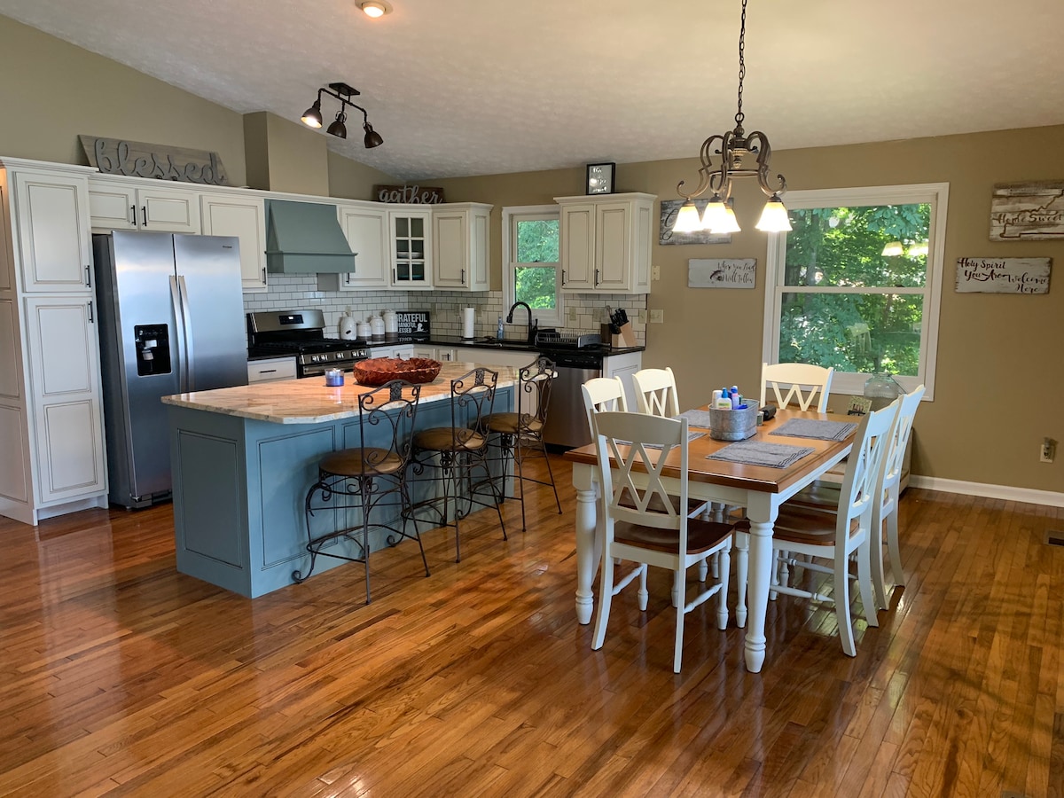 Kom bort, slappna av och fördjupa dig i "Lake Life" vid Kentucky Lake! Detta rymliga boende med 4 sovrum och 2 badrum ger en bra möjlighet att njuta av en semester med familj och vänner. Ett stort kök och öppet vardagsrum leder till ett enormt täckt däck. Rymlig parkering för båtar och andra sjöleksaker. Tekniskt utrustad med höghastighets fiberoptiskt internet med WiFi 6 router, Nest termostat, 2:a TV som kan dubbla som en extra bildskärm, August WiFi dörrlås, & weboost mobiltelefon booster utrustning.