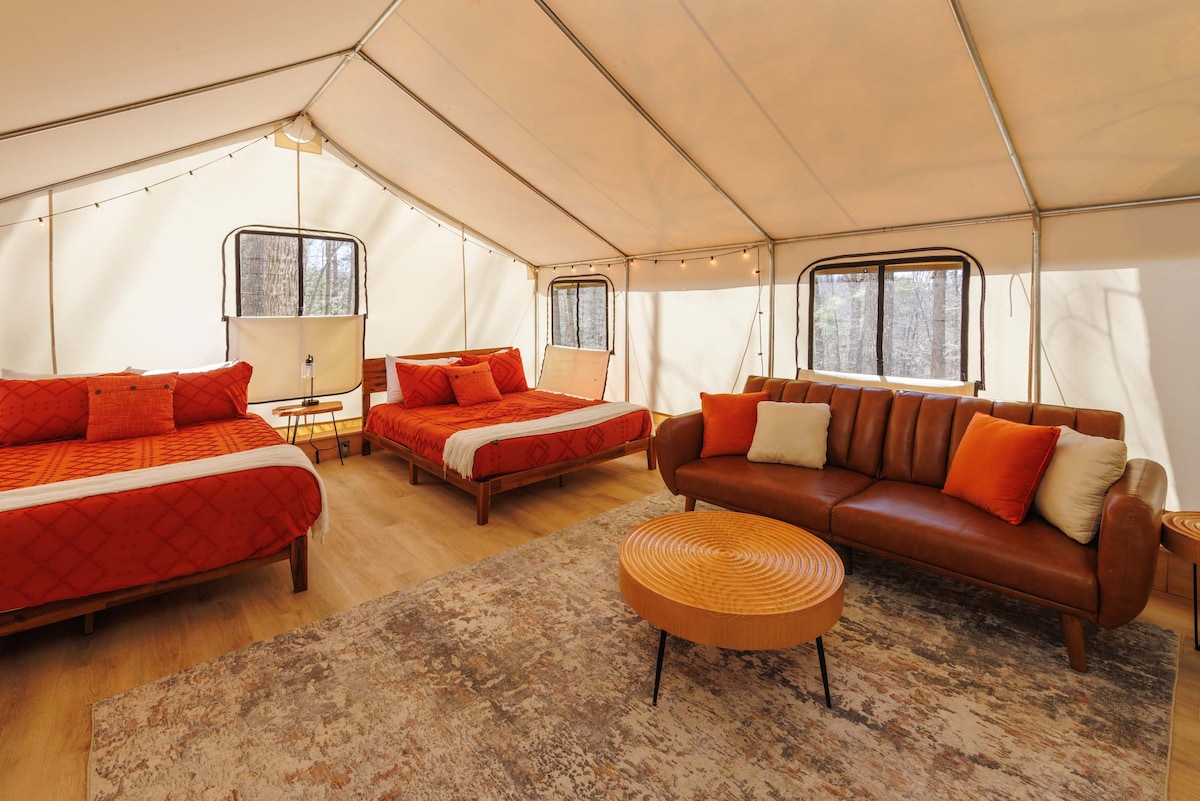 Dra dig tillbaka till skogen i vad som säkert kommer att bli en av de mest unika, uppfriskande semestern du har varit på hittills! Detta tält ligger precis intill Red River Gorge Kentucky och har utformats speciellt för att få camping att kännas lyxigt, enkelt och avkopplande! Nu med luftkonditionering! Vårt mål är att göra utomhusresor tillgängliga för så många människor som möjligt - vi skulle gärna vilja vara värd för dig.
