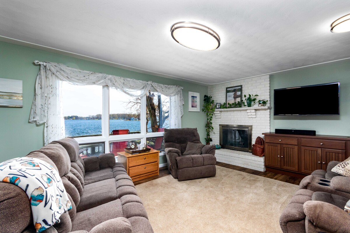 Sover 13 bekvĂ€mt över 8 bĂ€ddar i detta vackert uppdaterade hem. EPISKA VYER! VĂ€rm upp och koppla av i den privata bastun och bubbelpoolen efter snöiga dagar. Funktioner: tvĂ„ fullt utrustade kök, motionsrum, eldstad med grill för mysiga kvĂ€llar vid eldstaden och fridfull privat tillgĂ„ng till sjön med fantastisk vinterutsikt. Bara en kort promenad till Maria's Pizza och bara 25 minuter frĂ„n Grand Rapids flygplats. Perfekt för familjesemester, grupputflykter eller romantiska snöiga utflykter. Din varma fristad vĂ€ntar â boka nu