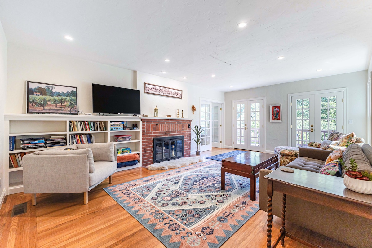 Den ultimata tillflyktsorten i vinlandet! Snygg oas med 3 sovrum och 1 badrum inbäddad i lugna Sonoma Valley. Charmig tillflyktsort med ett utrustat kök, inbjudande uteplatser, grill, utomhusspel och mysig eldstad, perfekt för att njuta av fantastisk skogig bakgrund. Koppla av på Peloton-cykeln eller njut av brädspel. Perfekt destination! Downtown Glen Ellen och Kenwood vingårdar ligger bara en fem minuters bilresa bort. En perfekt balans mellan avskildhet och bekvämlighet väntar dig. Husdjur är tillåtna, mot avgift.