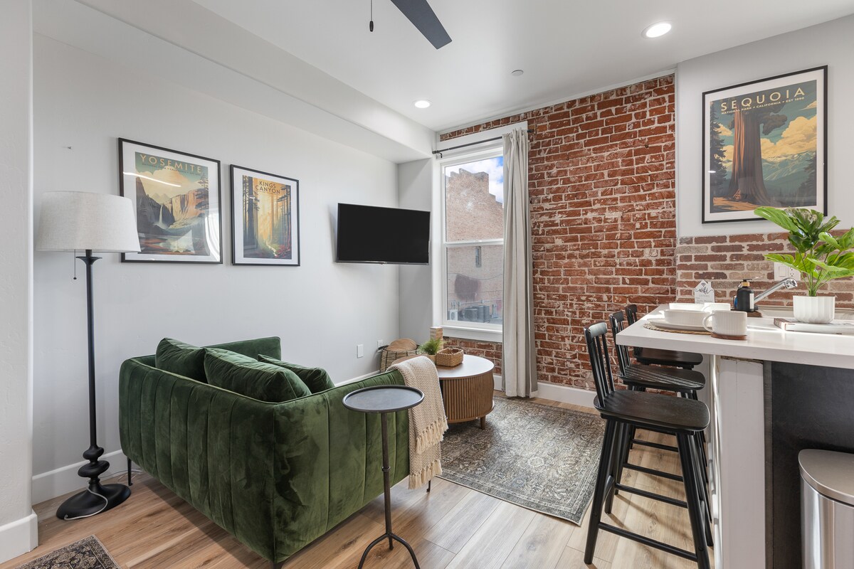 Snygg studioloft i centrala Tulare ovanför Tap Yard! Har en murphy säng, fullt utrustat kök, mysigt vardagsrum, och enkel tillgång till matsal, affärer och lokala sevärdheter.