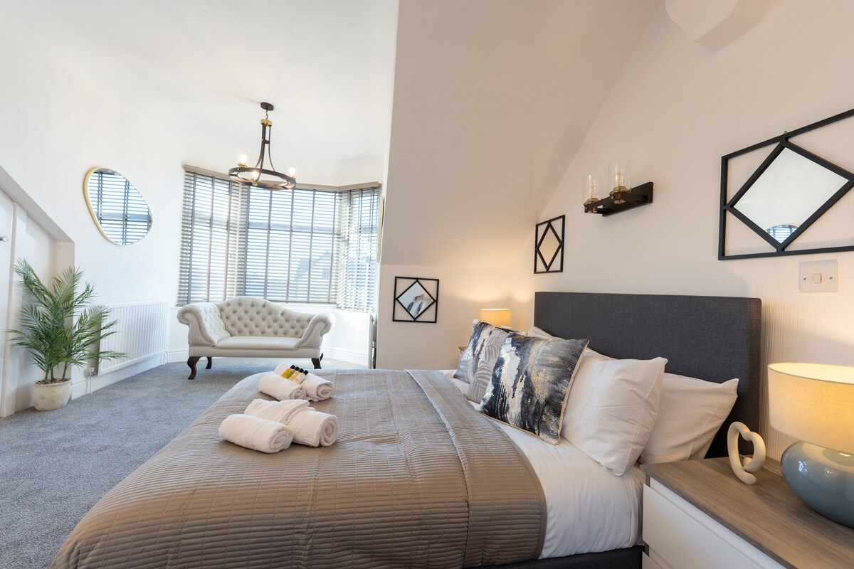 Sociala medier: "Manchester Hidden Gem" för direktbokning Lyxig privat reträtt – ultimat WOW-faktor! Unna dig något extra på denna fantastiska tillflyktsort, där elegans möter skoj. Koppla av i bubbelpoolen, njut av filmkvällar i en av två eleganta lounger eller utmana vänner i spelrummet. Laga mat och umgås i det eleganta köket med öppen planlösning, allt i vackert avskilda omgivningar. En femstjärnig upplevelse från det ögonblick du anländer. Extremt nära Manchester flygplats och centrum.