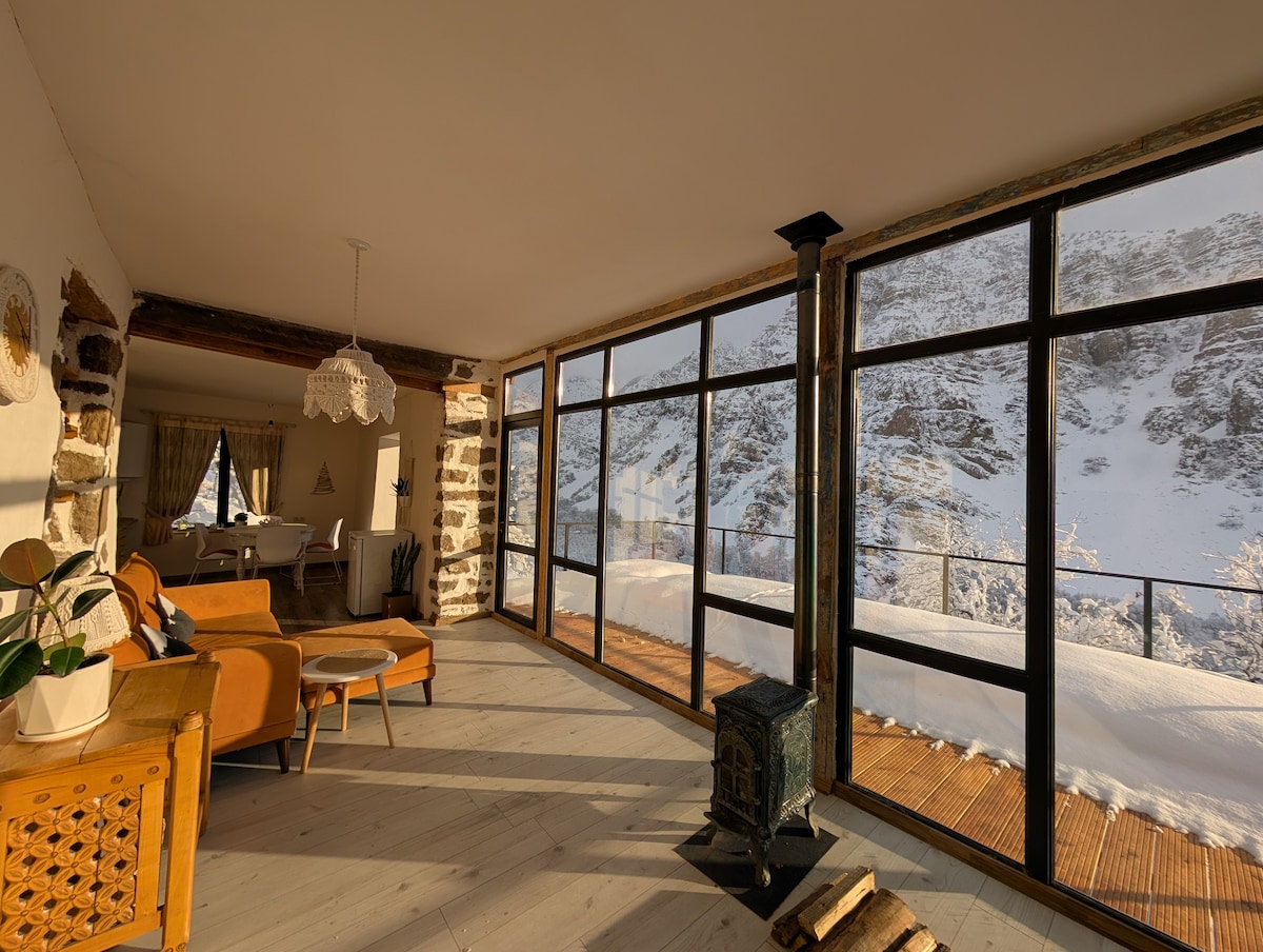 Unikt boende för hela familjen kommer att ge oförglömliga minnen. Huset är på väg till Jermuk. Rakt på berget. Det finns en mysig plats nära huset, ett rum med utsikt över bergen. Det finns en stor trädgård med en vacker utsikt där du kan tillbringa tid avkopplande från bullret och få lite frisk luft. Vi är glada att vara värdar och vill gärna ha dig i vårt älskade hem 🥰