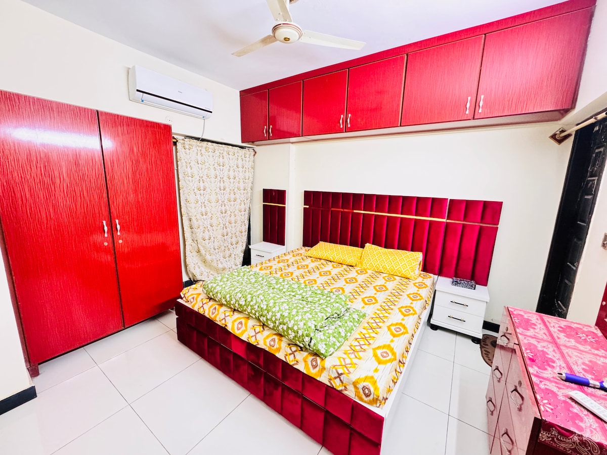 Välkommen till vårt mysiga, familjevänliga boende i hjärtat av Sukkur! Perfekt beläget för både fritids- och affärsresenärer, erbjuder vårt utrymme komfort, bekvämlighet och alla bekvämligheter du behöver för en avkopplande vistelse. Oavsett om du är här för att utforska Sukkurs livliga kultur eller på en affärsresa, kommer du att känna dig som hemma i vår moderna tvårumslägenhet med två badrum.