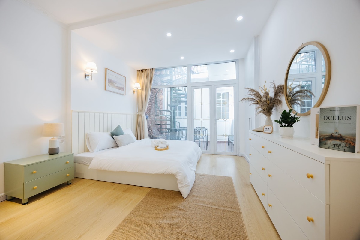Förnyat 30-årigt hus till en WABI-SABI Insta-värdig studio direkt från Pinterest📸 🚊SÅ CENTRALT!!! 2 minuter till fots till Food St, Train St, Imperial Citadel, etc. ✨5-stjärnig hotellmadrass, mörkläggningsgardiner, netflix, jacuzzi 🛀 🙋trevliga värdar som guidar dig genom varje steg av din vistelse-eller håller sig osynliga om du föredrar det-plus en lokal vän för livet 💻CAT6-kablar för Wi-Fi i företagsklass och stabilt LAN (💕 våra diginomader) 🌿lugnt område som får dig att glömma att du är mitt i HJÄRTAT av Hanoi