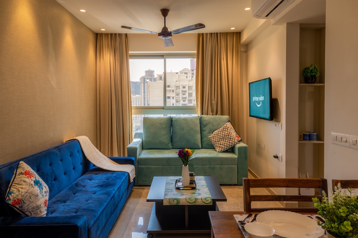 It's ultra stylish 1 bedroom smart kitchen & Living room apartment located 30 minutes from T2 (International airport) , 7 mins drive to R city mall 30 mins to BKC and many more important places close by. Its centrally located with a awesome view of vibrant skyline and glimpse of peaceful lake overlooking the apartment.Great for kids as parks and lot of activity available nearby. Not to forget many happening night life, pubs & discs nearby.
