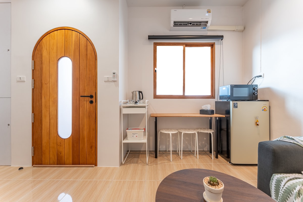 Ha kul. Köket i utrymmet är elegant. Slutför dina dagar avkopplande med en mysig hörn. Oavsett om du är på semester, arbetar, lagar mat, lyssnar på musik, tittar på filmer. Komfort i en vacker mysig miljö. Den är klar för dig här. På ett nära läge till Lotus-butiker, Big C, 7-Eleven. Och nära till allmänna busslinjer. Det kan ge dig enkel tillgång till var som helst.