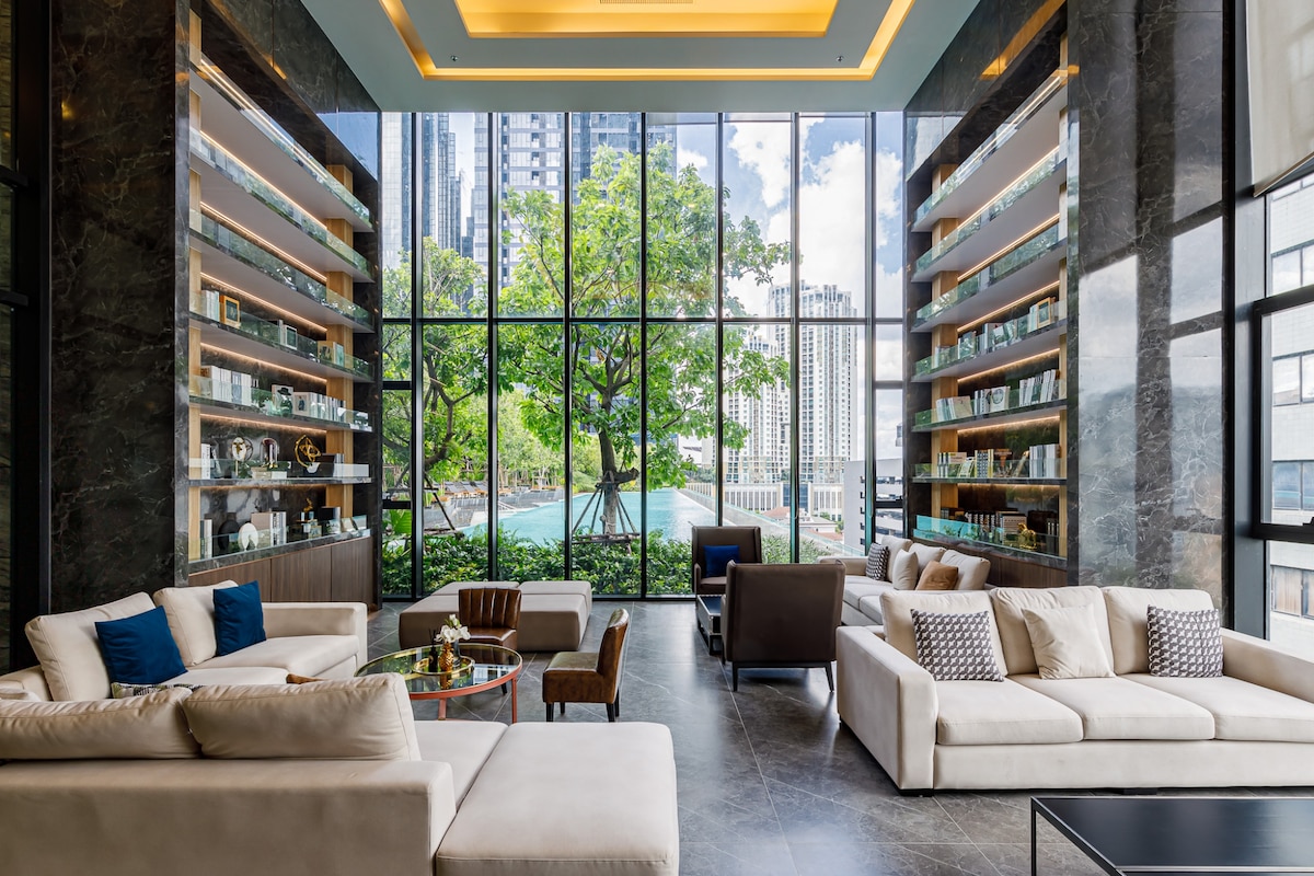 *Ny annons hanteras av en Superhost på Airbnb* Denna nyrenoverade rymliga 1-BD-lägenhet (~50 kvm) har tropisk design för en oas i staden. Njut av fullständiga faciliteter, inklusive gym, pool och bastu. Beläget i trendiga Thonglor hittar du många restauranger, kaféer och barer bara några steg bort, vilket gör det perfekt för par, familjer eller digitala nomader som söker det bästa av Bkk. Närmaste BTS-station är Thong Lo, som erbjuder den ultimata bekvämligheten att ha allt du behöver inom gångavstånd.