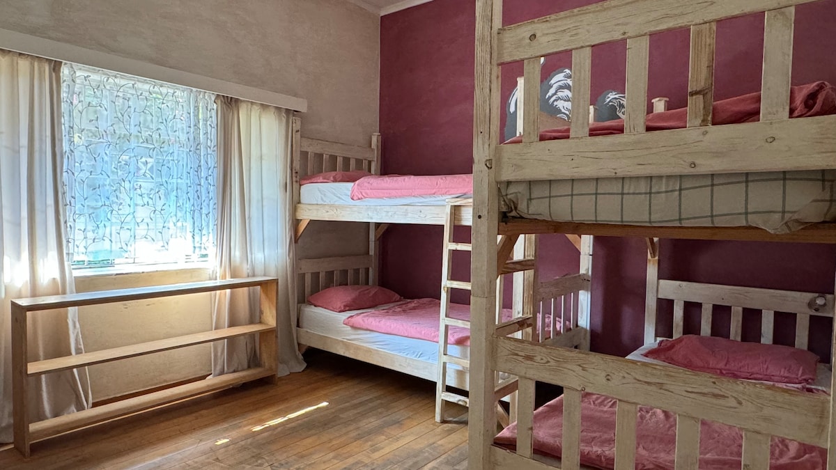 Låg-frill budgetvänligt familjestorlek boende i centralt beläget rustik och rymlig 200 kvm stuga i fågelrika trädgården med utomhus faciliteter. Nära Swakop Car Hire, Bushlore etc., idealisk som första och sista stopp för självkörande safaribesökare med säker parkering, gångavstånd från CBD och Wernhill shoppingcenter och flexibla incheckningstider. Hundvänligt för vänliga hundar.