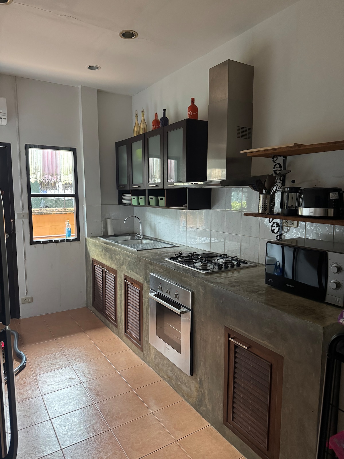The house was built in 2011 and is spacious and open with very nice interior. It has a big nice terrace in front and along the whole side. There is a new build pool, 2025, size 12x4 meters! . There is complete kitchen-ware & towels and bed linens are included. There's AC in the living room/kitchen and in 2 bedrooms. Perfect location! 2 min Morningmarket 5 min Bang Niang 10 min swim 15 min Memories beach (Surfing) Scooters are available for rent for an extra cost. Please let me now in advance.