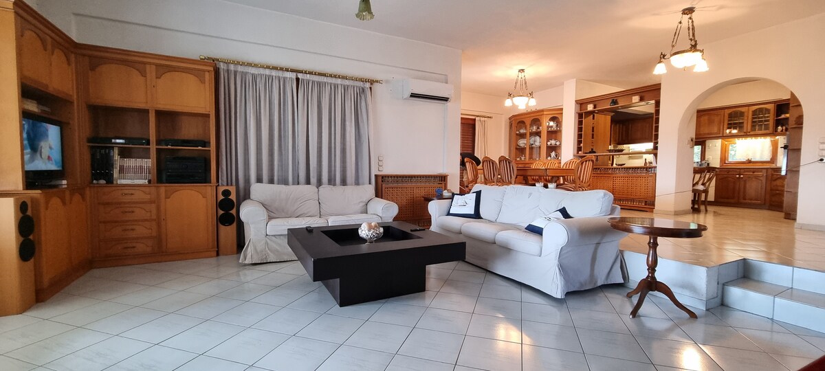 "Livadaki Villa" rymmer bekvämt 1 till 9 gäster, plus 1+ spädbarn, vilket gör det perfekt för tre par, en stor familj eller en grupp vänner. Huset har tre sovrum med två privata balkonger, ett badrum och ett avkopplingsrum med jacuzzi på bottenvåningen. Bottenvåningen erbjuder en rymlig hörnveranda, ett mysigt vardagsrum, ett fullt utrustat kök och matplats. Dessutom är källarvåningen en hel extra lägenhet som ger extra utrymme och bekvämlighet.