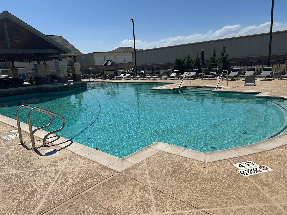 Välkommen till din lyxiga 2BR/2BA retreat bara 5 minuter från Ft Hood! Njut av elegant komfort med en privat balkong, fullt utrustat kök, kaffestation och tvättmaskin/torktumlare. Håll kontakten med snabbt wifi och koppla av med 2 smart-TV. Gäster har fullständig tillgång till den glittrande poolen, fitnesscentret och gratis parkering. Oavsett om du besöker familjen, reser i arbetet eller bara passerar genom Killeen, erbjuder denna exklusiva lägenhet den perfekta blandningen av avkoppling och bekvämlighet.