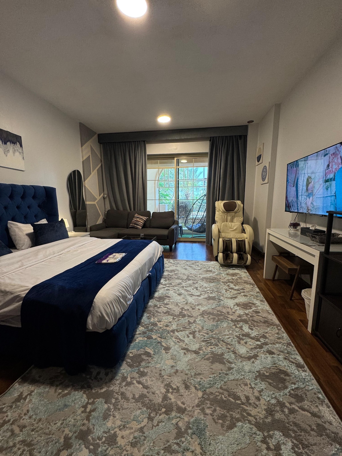 Daglig hyreslägenhet i King Abdullah Economic City Snygg design för rekreation och njutning av att bo i King Abdullah City för familjer och individer och har en närvaro , utrustat kök, smart TV, gratis internet, parkering , massagestol Det har också närhet till marinan, havet och evenemangsområdet. Vi ser till att tillhandahålla de bästa tjänsterna och uppmärksamheten på detaljer .