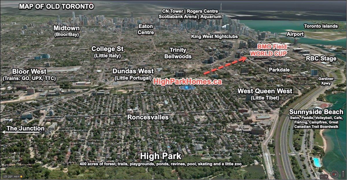 Why HighParkHomes? Best location value. Save w direct, short hops to all the best Toronto offers. *Quiet block near all the fun: Dundas W|Queen W|Trinity Bellwood|Roncy|Little Portugal|Little Italy|Bud Stage|BMO Field|Scotia Arena|Rogers Centre. *Fully private. *High ceilings. Heated floors. *Powerful rain shower. Bidet. USB ports all over. Quality furnishings. *Sunlight fills the suite thru the 9 foot glass entryway. (NB, this is a bsmt reno'd to 9'). *Full kitchen. Full laundry in suite.