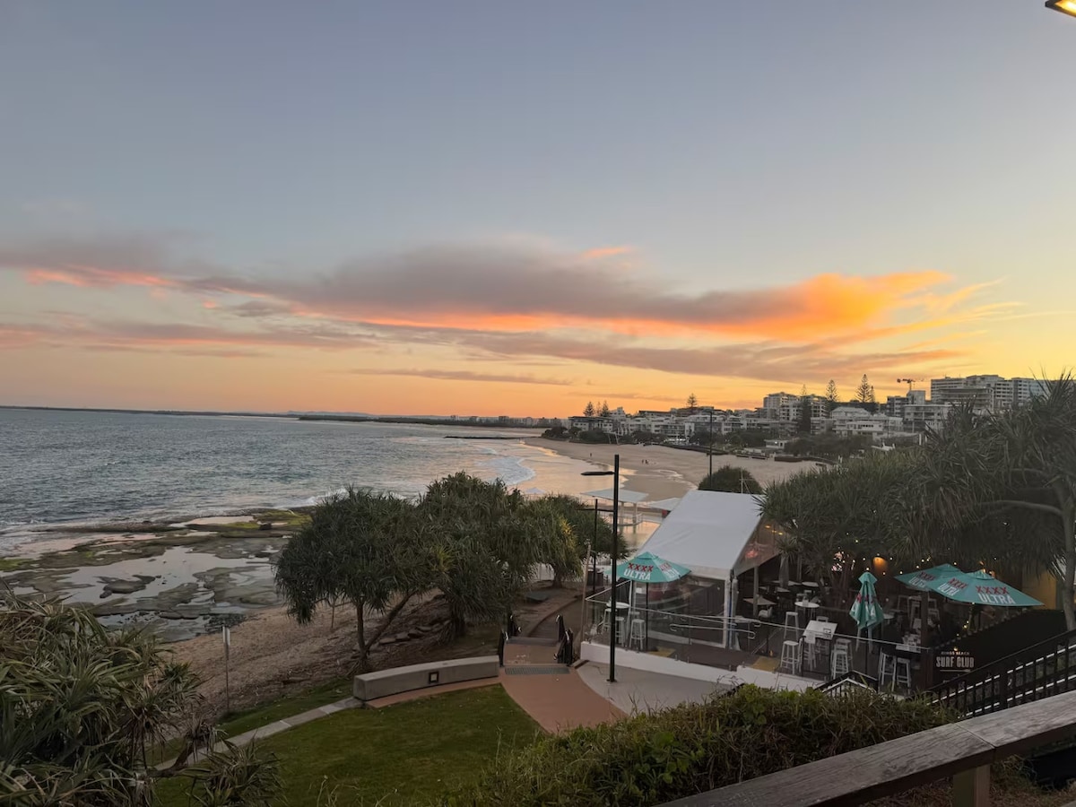 Om du letar efter den bästa möjliga platsen i Caloundra... gå ut genom dörren till Bulcock Beach, barer och restauranger, sand och hjärtslag i området, kan du inte bli bättre! Din egen privata solig takterrass med utsikt för att imponera, komplett med grillning, det är den perfekta tillflyktsorten! Du kommer inte att använda din bil, allt finns till hands....observera att byggandet har börjat tvärs över vägen, så vi har minskat kostnaden för vistelser mitt i veckan... det kanske finns lite byggbuller under dagen