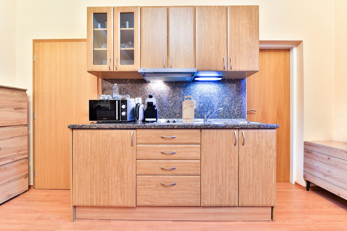 Mysig, fullt utrustad, ny lägenhet med garage i centrala Pilsen