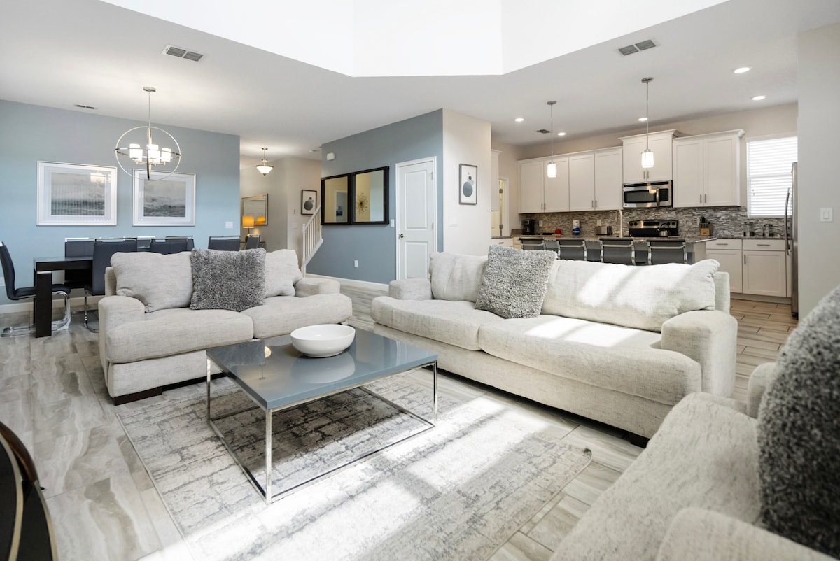 En smart, elegant vistelse utformad för oförglömliga dagar i Orlando. Detta boende med 4 sviter erbjuder avskildhet, komfort och en avslappnad lyxig atmosfär. Njut av en privat bubbelpool, grillterrass och elegant modern inredning, allt bara några minuter från Disney och nära restauranger, shopping och underhållning. En perfekt matchning för familjer som vill ha utrymme, stil och läge.