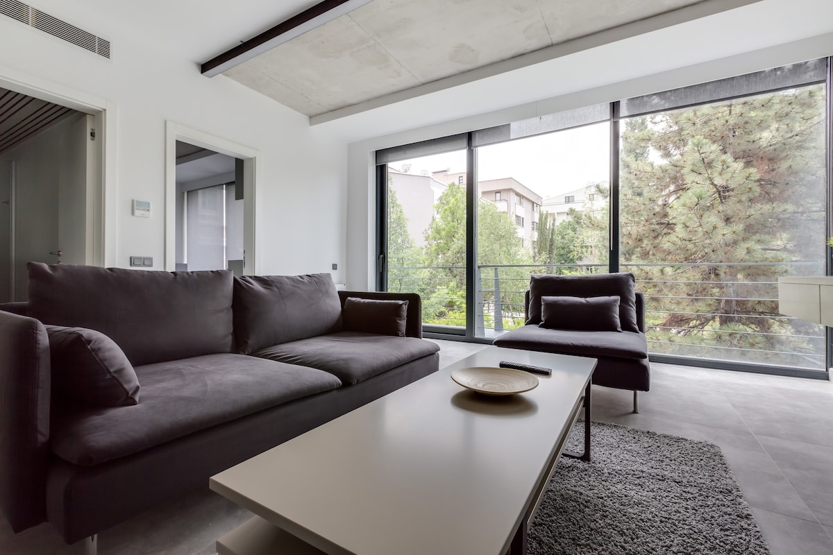 Lyxigt möblerad lägenhet med alla detaljer speciellt inredda. Under lägenheten; det finns platser som restauranger, barer, frisörer, kaféer, etc. STADSVY OCH STOR TERRAS SPECIALDEKORATION OCH LYXMÖBLER LUFTKONDITIONERING OCH GOLVVÄRME OUTDOOR-INDOOR PARKERING SJÄLVSTÄNDIG INCHECKNING MED LÅSBOX STÄDTJÄNST FÖR LÄNGRE VISTELSER