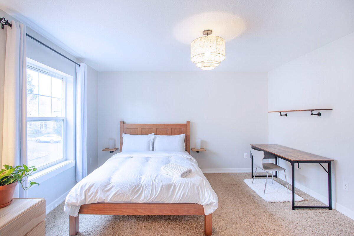 Bra ställe: -5 minuter till Interstate 5 -15-20 minuter till flygplatsen -2 kvarter till livsmedelsbutik -1 kvarter till kafé -77 promenadpoäng, 85 cykelpoäng INGEN STÄDAVGIFT! Parkering på uppfart Separat ingång Tidigare gäster har varit mycket glada över de bekväma sängarna och det lugna läget Sviten är husdjursfri, eftersom värden är mycket allergisk. Mycket lämplig för personer med allergier. 2: a sovrummet tillgängligt för fester på 2 för $ 10/natt. 3+ gäster medför extra personavgift vid bokning